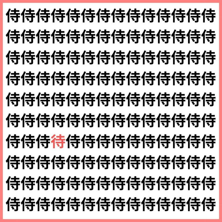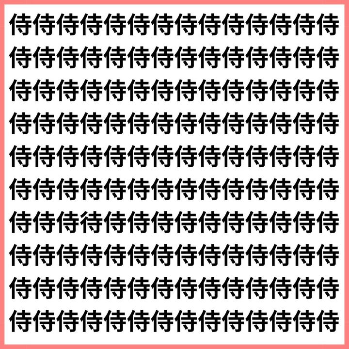 たくさんの「侍」の中に、1文字だけ違う漢字が混ざっています。