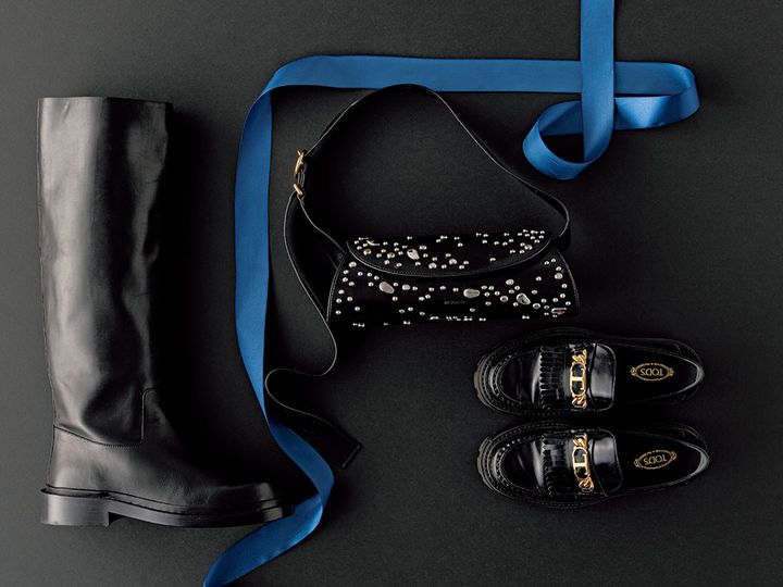まずはパンツの相棒になるガシガシ歩けるボリューミーなローファーを。次にずっと持っていなかったブーツを加えてミニスカやショーパンにトライしたい。バッグは大人のコーデを盛り上げるスタッズ付きを選びました。