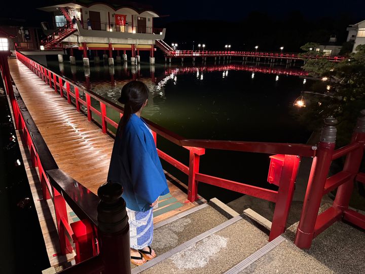 夜の景色の中に露天風呂へ続く赤い橋の雰囲気がまたもや最高っ!!という感じでした!