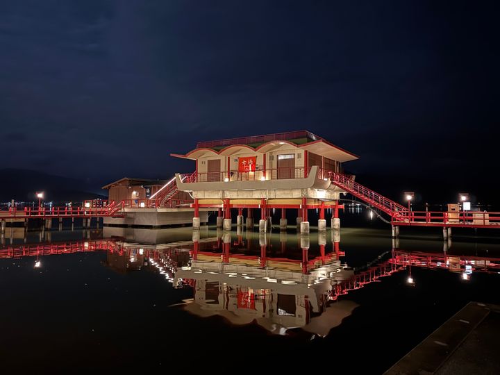 部屋中の光💡が綺麗に湖に映し出されてて圧倒されましたね。