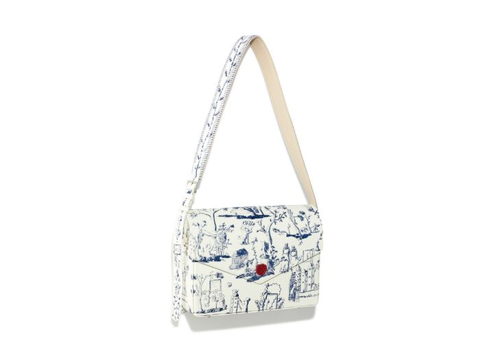 『シンヤコヅカ』と『TSUCHIYA KABAN』のコラボバッグ。手描きによるトワルドジュイ柄のプリントが目を引く。