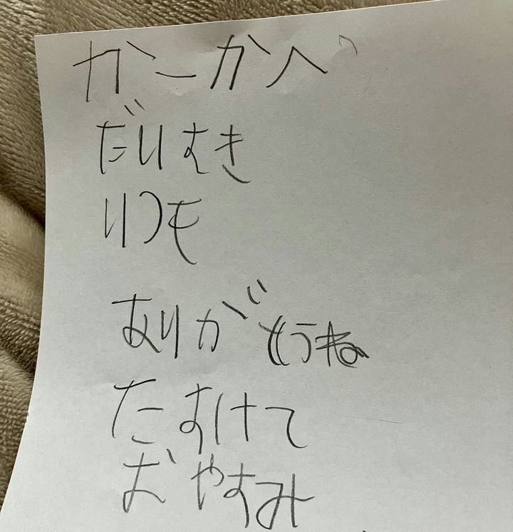 この記事ではX(旧Twitter)でバズった投稿を紹介します。今回紹介するのはおしそ(@_______aona)さんが投稿したある写真。わが子から手紙をもらったことはありますか?なんでもない日にもらうお手紙は、うれしいですよね。「ありがとう」や「大好き」という言葉を見ているだけで、幸せな気持ちになります。しかし、たまに「ん?」と思うような一文が含まれることも。思わずふき出してしまうような投稿をご覧ください。