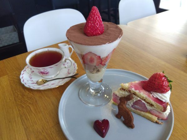 ケーキはショーケースから選べますが、800円以上のケーキは差額がプラス料金になります。かおぴぃは、いちごのフレジエ(880円)を選んだので、2080円でしたよ。ドリンクもコーヒー、紅茶、ハーブティー、ジュース類などから選べますよ。うさぎのクッキーとパッションフルーツのボンボンショコラが付いていて、トキメキました!かわいい~。そして、見た目以上にボリューム大でしたよ。ケーキには、丸ごとのいちごがゴロゴロ~。たっぷりの生クリームとベストマッチでオイシイ~。チョコパフェにも、いちごとザクザクのグラノーラと冷たいアイスクリームがたっぷり!