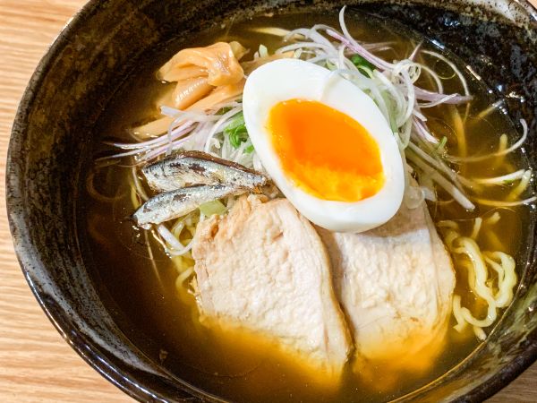 煮干しの香りを強く感じるので、お好みで煮干し粉の量を調整しつつ顆粒の鶏がらスープやうま味調味料を添加しても◯。オリーブオイルは多めに入れると、磯の香りが穏やかになり旨みが際立ちます。薬味は山椒がぴったりですが、なければ胡椒で。