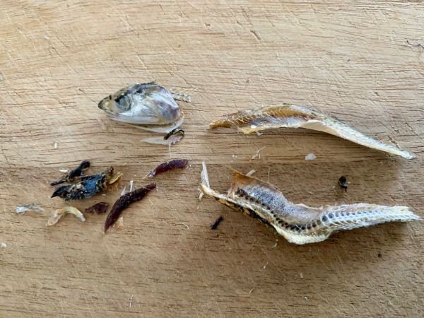 頭(エラ)とはらわたを取り除くのは、旨み成分(水に溶けやすい)を多く抽出するため。割いて使うのは、旨みの強い身の部分をちゃんと浸水させる目的。 少し手間はかかるけれど、エラを取り除けば頭も旨みに。