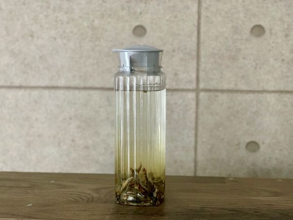 煮干しの頭とはらわたを取り除き割いたものにお水を入れるだけ。10時間以上浸水させるといいお出汁が。頭とはらわたを取り除かなくてもストロングな煮干し感を味わえますが、苦味や磯の香りが強くなるのでお好みで。
