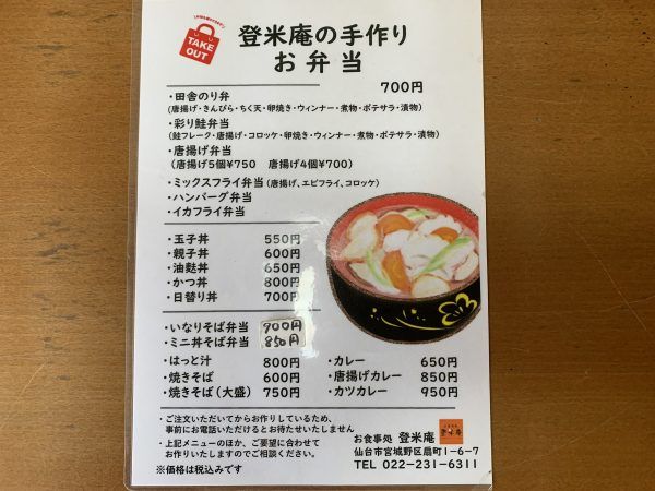 テイクアウトメニューもあります。注文を受けてから作るそうで、事前に電話予約をすると待たずに済むそうです。丼ものや、はっと汁もテイクアウト可。いいですね!