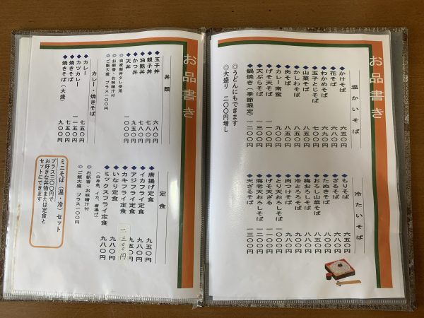はっと汁もしょうゆとカレーの2種。定食は唐揚げやフライ、かつ丼や天丼も揃ってます。お蕎麦・うどんも、暖かいもの、冷たいもの各種あり、あらためてメニューの多さに驚きました。