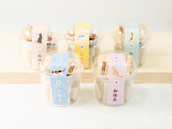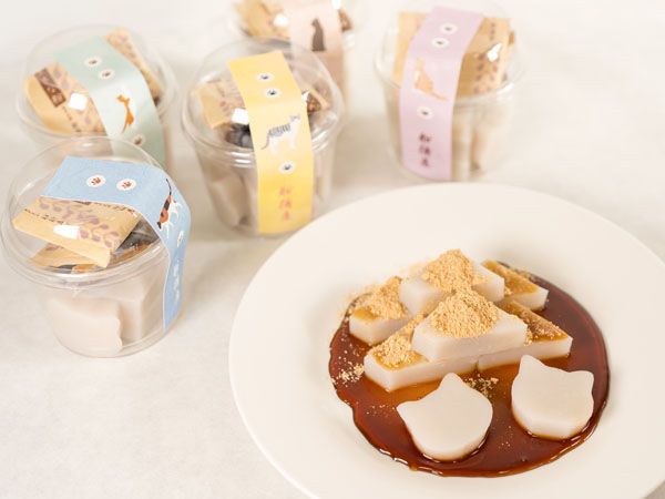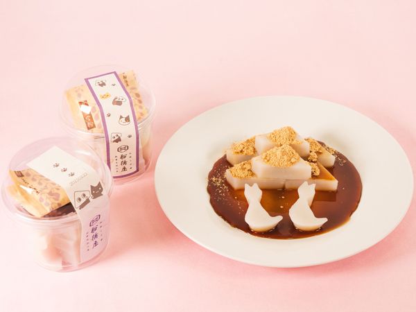船橋屋では、2/22の猫の日を記念して、「猫カップくず餅」「猫あんみつ」を、“猫の街”谷根千エリアに位置するエキュート日暮里店と公式オンラインショップで発売中です。いつもの定番商品が愛らしい猫モチーフになっていて、猫好き&和菓子好きにはたまらない商品です。