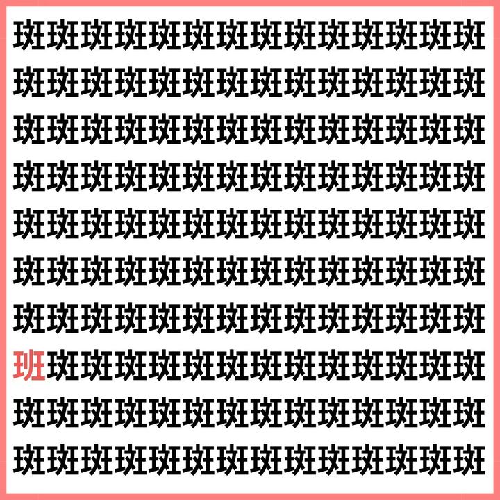 たくさんの「斑」の中に、1文字だけ違う漢字が混ざっています。