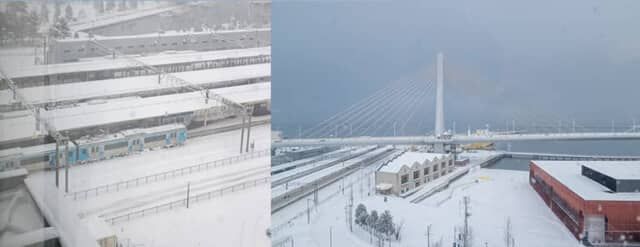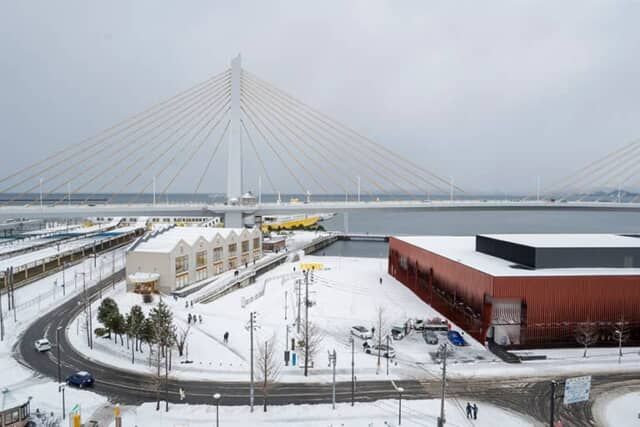 この日は北国青森の雪景色を楽しむことができました。天気のいい日は水平線に下北半島を望めます。毎年8月に開催されるねぶた祭りの最終日は花火が打ち上がり、ラウンジからも見られます。
