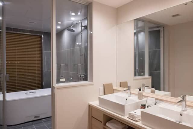 利用人数の多いトリプルルームはダブルベイシンを採用。