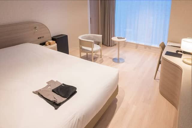 シングル利用を想定した客室ですが、ゆとりのある20平米ほどの広さで、ベッド幅も150cm。2名利用でもゆったりと寝られます。