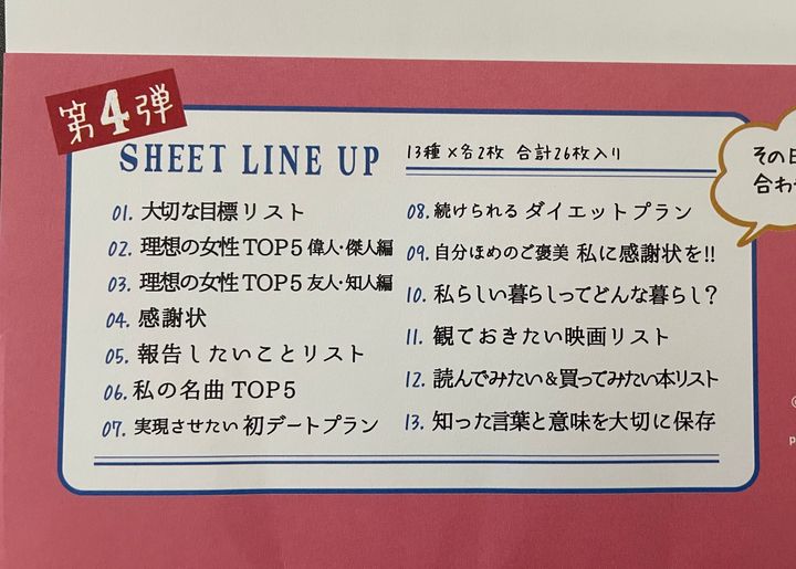 ポップな絵柄で気分も上がる各シートはテーマごとに2枚ずつ。