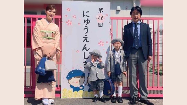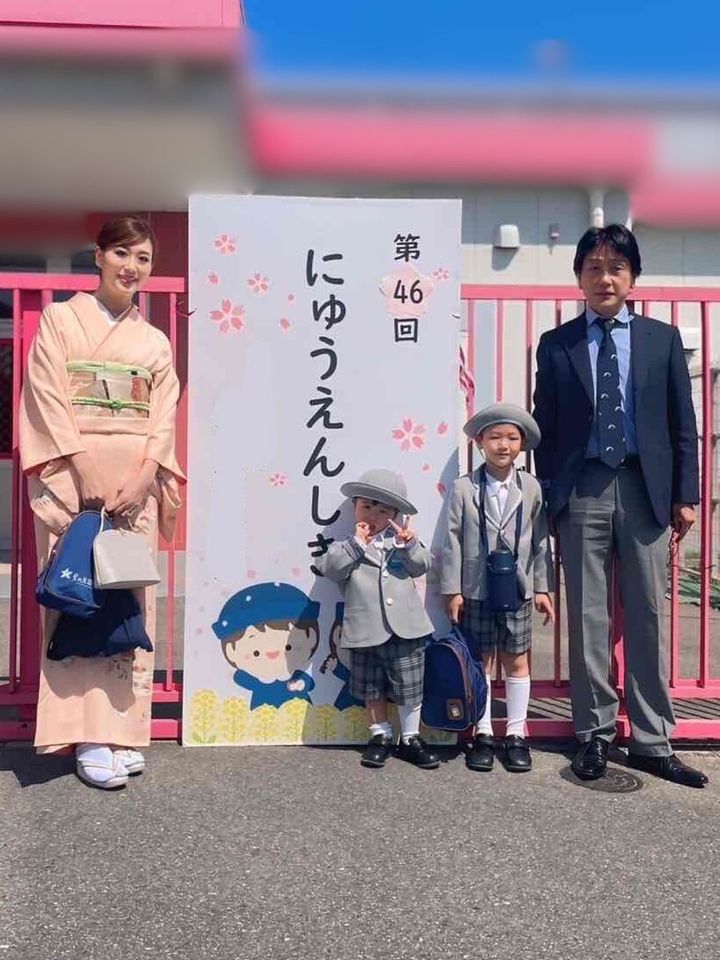 「次男の入園式は着物で出席。母から譲り受けたものですが、なかなか着用する機会がないのでセレモニーでは絶対!と思っていました。着るだけで顔色がパッと華やぐ桃色で、柄も上品なところが気に入っています。帯は金で華やかに、黄緑の帯揚げと帯締めで爽やかな印象を意識しました。くらしのマーケットで出張着付けを探し、結果的にヘアセットも一緒に頼める中川着付け教室の方に依頼。着付けとヘアセットを同時に頼めたので、支度は1時間半ほどで終了。バタバタな当日もスムーズに準備ができました」吉田由嘉利さん・35歳(主婦/6歳と4歳の男の子ママ)