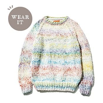 マルチカラーニット/LES TRICOTS D’O(THIRD MAGAZINE) 「1色1色は目立つ色が使われているけど、混ざり合うことで中和されて逆に使いやすい。ニットのやわらかなグラデーションを生かし、全アイテムをマイルドカラーでまとめるのが気分」(岩田さん)