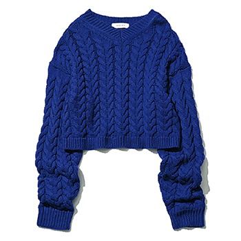 ブルーベリーセーター/SAYAKA DAVIS(ショールーム セッション) 「冬らしいニュアンスのあるニットであえての寒色が新鮮。ブラウンとの合わせがイチオシです」(岩田さん)
