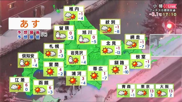 背景は14日午後5時ごろの小樽情報カメラ