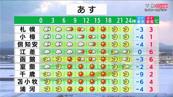 背景は14日午後5時ごろの千歳情報カメラ