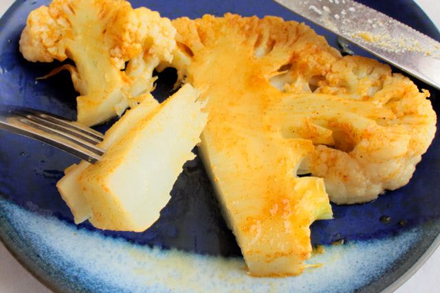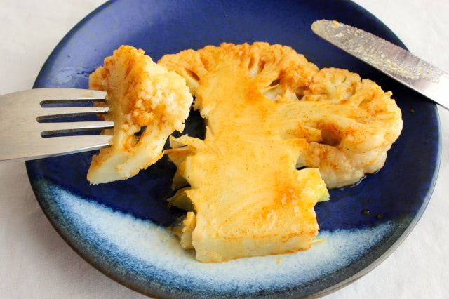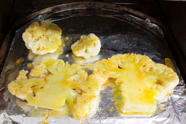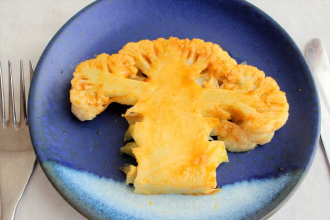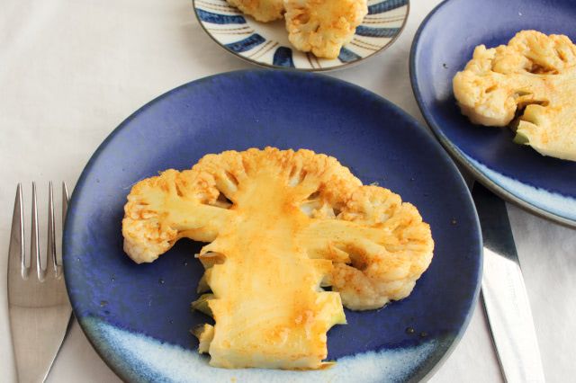 スパイシーオイルを塗って焼くだけ♪カリフラワーの断面萌えで絵画的なひと皿に