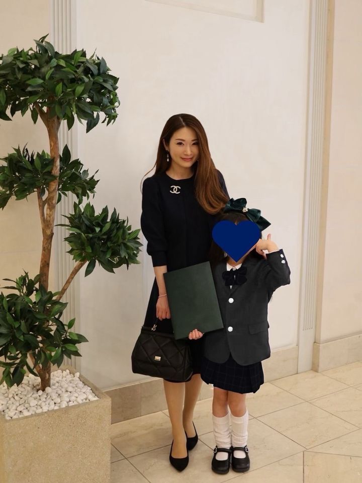 「普段から娘と出掛ける日は並んでバランスがいいかを意識しているので、卒園式も制服になじむネイビーを選びました。パンツスタイルと迷いましたが、娘が可愛い服がいいと言ったのでワンピースに。式典後はスクールの友だちとランチに行ったので、動きやすい洋服にして正解でした」佐伯紗代さん/44歳・スクール主宰(7歳の女の子ママ)