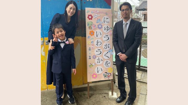 「普段からスカート派のため、入学式も迷わずワンピースに。入学は白というイメージがあってジャケットを新調したので、ワンピースは白に合わせやすく、手持ちでフォーマル感もあるネイビーを選びました」立石 恩さん/37歳・主婦(7歳の男の子ママ)