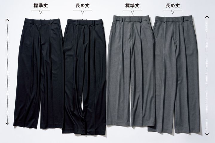 タックワイドパンツ・丈長め¥3,990、タックワイドパンツ¥3,990/ともにUNIQLO