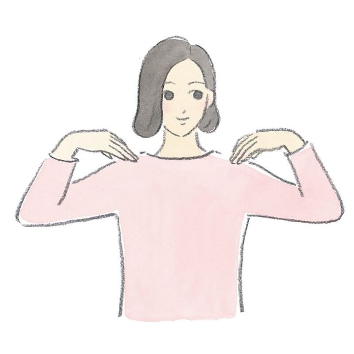 ① 肩を両手にのせる。