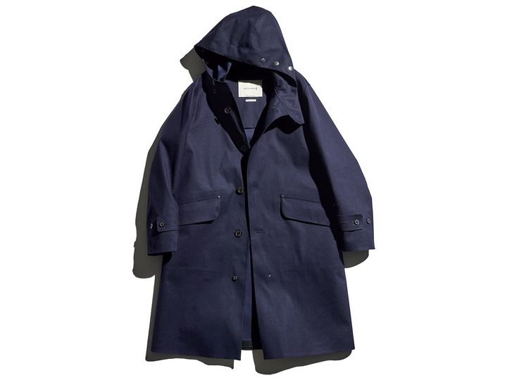 元祖ハイテク素材のゴム引き防水生地を用いつつ、フーデッド仕様にすることで纏った肩肘張らない雰囲気はイマドキ。