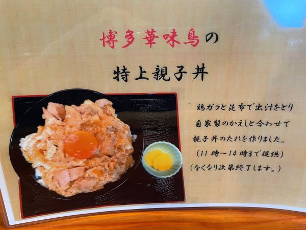 このパネル、入店前に掲示されていましたが、カウンターにも掲示されています。 説明文を読むと、コダワリ満載のように見えます。通常の親子丼が750円なのに対し、特上親子丼が900円。 その差がどれ程のものか?気になって仕方ありません。 でも、今日は10時前半の入店でオーダー不可。ん~残念!