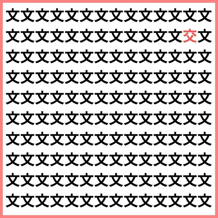 たくさんの「文」の中に、1文字だけ違う漢字が混ざっています。