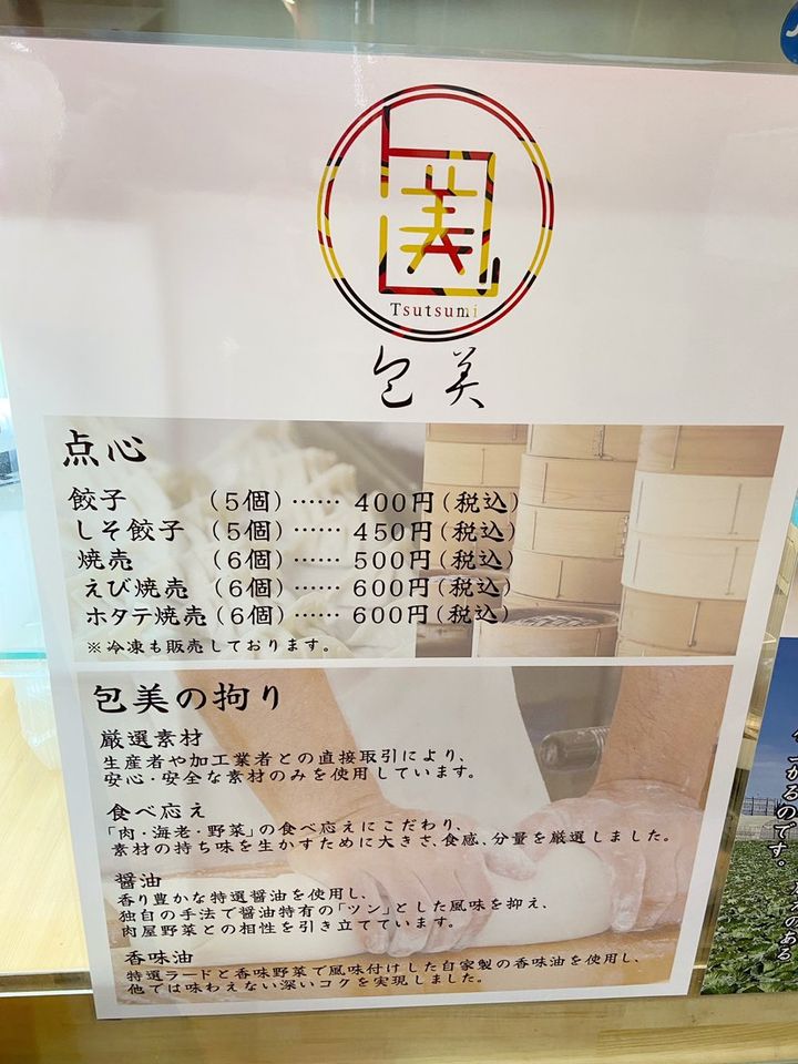 オープン当初から大人気の餃子・しそ餃子・海老焼売・焼売等も引き続き販売されています。是非こだわりの詰まった包美の点心類も、ぜひ召し上がってみて下さいね^^冷凍でも販売されているので、お土産にもオススメですよ!!