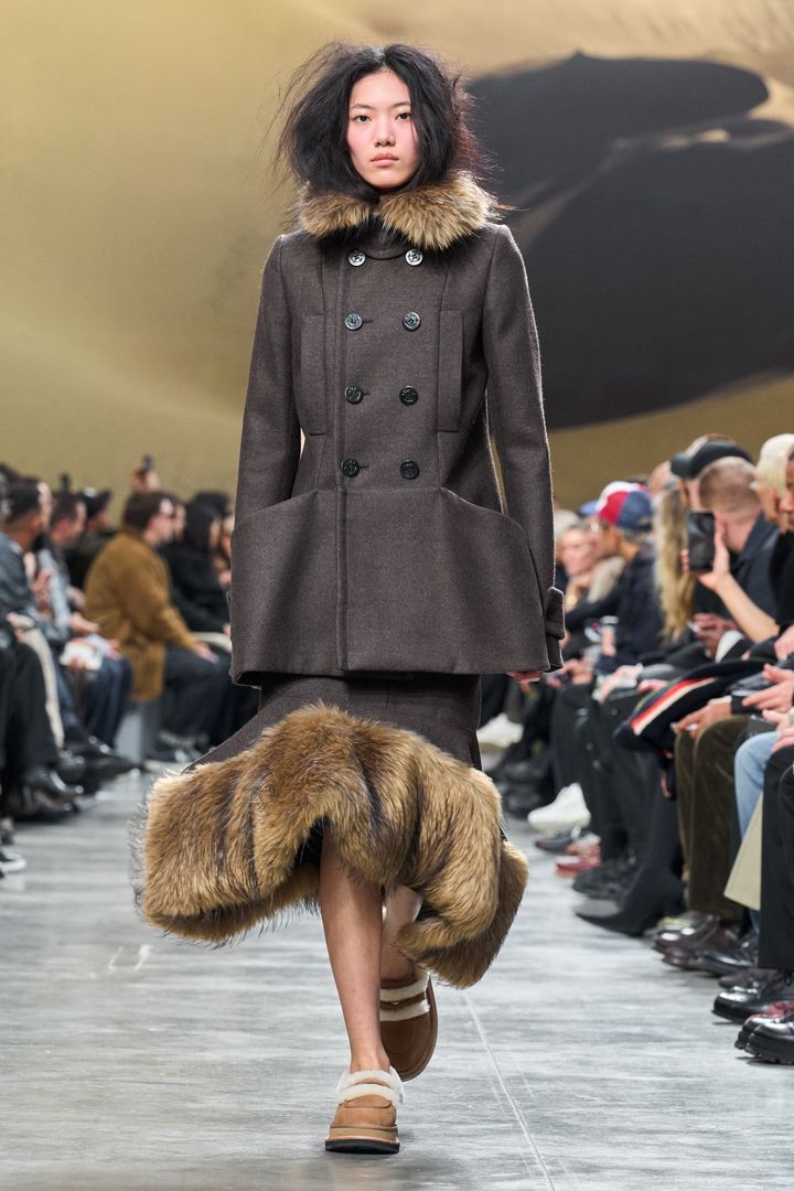 ウィメンズの2025年秋コレクションも併せて発表したサカイSACAI)のランウェイでは、アグ(UGG)のコラボ第2弾が解禁された。ラインナップは、太ももまで高さのあるサイハイブーツ、ローファー、ハイカーブーツの全3型。アグはTikTok上でも大きな注目を集めており、ファッション分野におけるマーケットプレイス兼データプラットフォーム『Lyst』による2024年第4四半期の“最もホットなブランド”の10位にランクインするほどの人気ぶり。