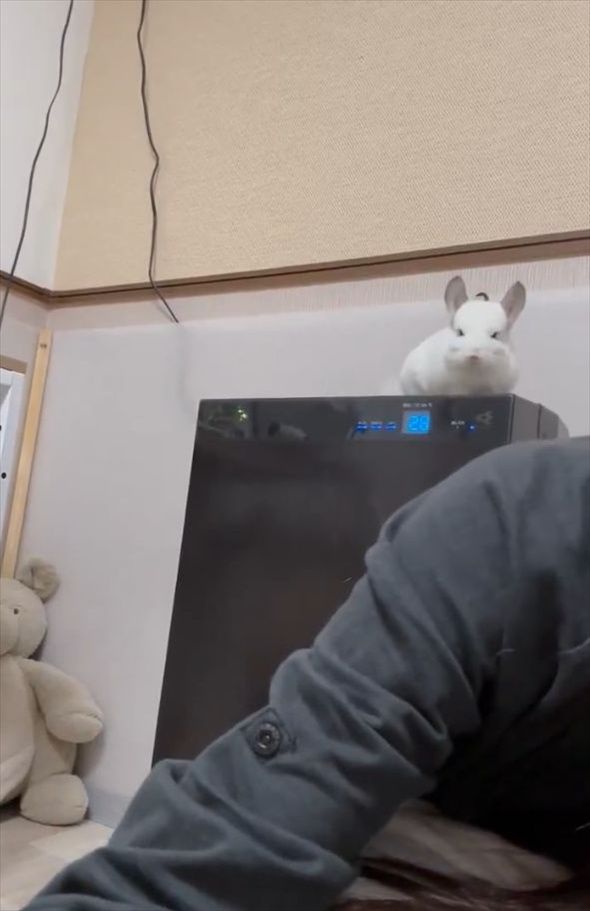 3. 飼い主さんを踏み台に!除湿機から降りるチンチラは躊躇も容赦もない!