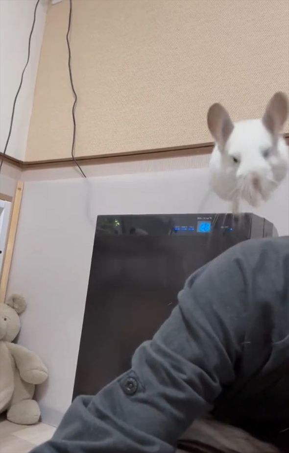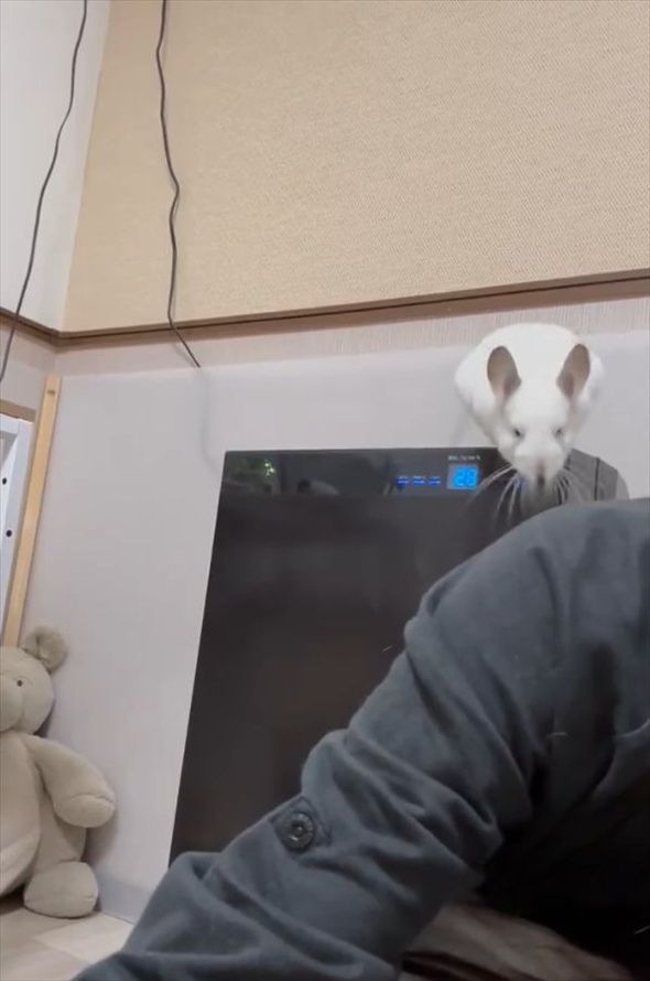 飼い主さんを踏み台に!除湿機から降りるチンチラは躊躇も容赦もない!