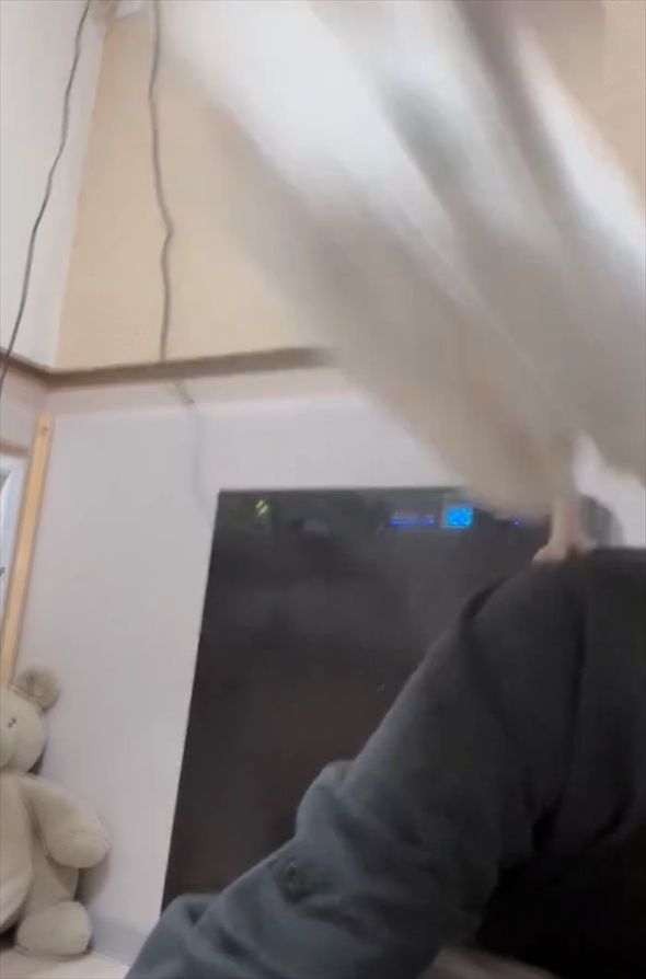 そして、除湿機を蹴ると除湿機のそばで待機していた飼い主さんの肩付近めがけて真っすぐジャンプ!
