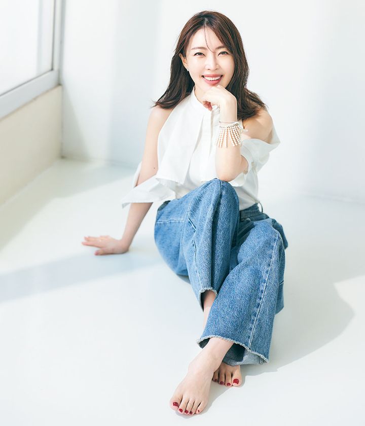 <profile写真>シャツ¥27,000(シーニュ)ピアス¥158,400バングル(上)¥726,000パールバングル(下)¥193,600(すべてビジュードエム/ビジュードエム六本木ヒルズ)その他/スタイリスト私物