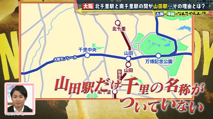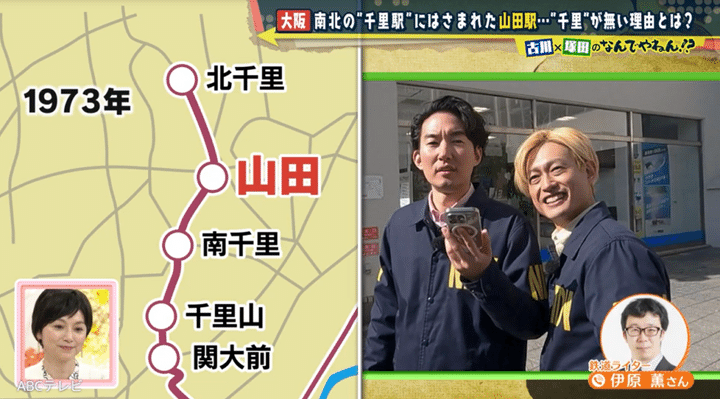 大阪・阪急千里線の北千里駅と南千里駅の間の駅といえば、山田駅。なぜこの駅名には、「千里」がつかないのか? A.B.C-Zの塚田僚一とABCテレビの古川昌希アナウンサーが調査したところ、約55年前に開催されたビッグイベントの影響で、この山田駅が誕生したことがわかった。