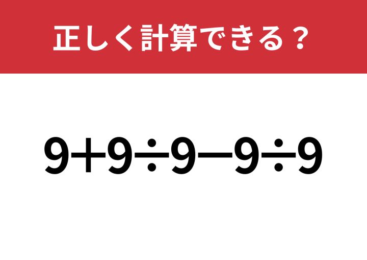 「9+9÷9−9÷9」正しく計算できる?