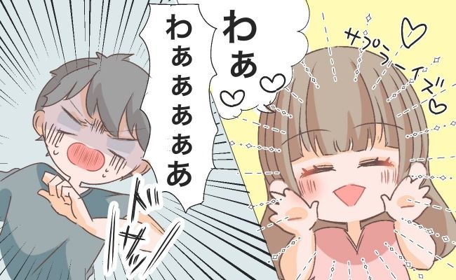 2時間かけて彼の家まで行き、インターホンを押して彼が出てくるのを待ちました。そして、ドアが開いた瞬間、彼を脅かすために「わぁっ!!」と勢いよく飛び出したのです。