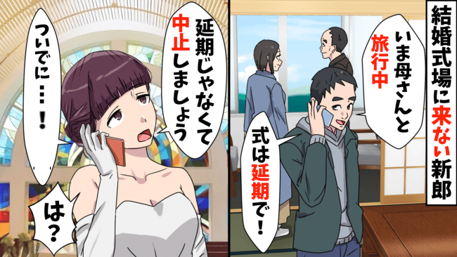 「親孝行旅行中〜♪式は延期で!」結婚式をドタキャンした夫。親不孝者にしてあげる♡夫の転落ストーリー開始!