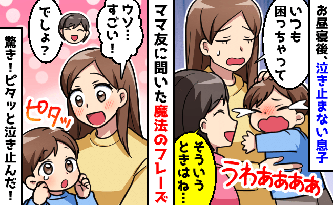 3. 「え、本当に泣き止んだ!?」驚愕!ママ友から聞いた【魔法のフレーズ】がグズる息子に効果テキメン!