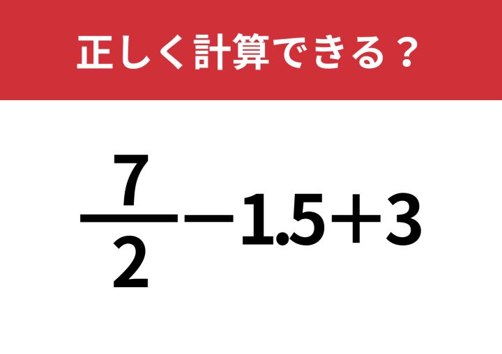 分数と小数の計算ってどうやるの?「7/2−1.5+3」正しく計算できる?