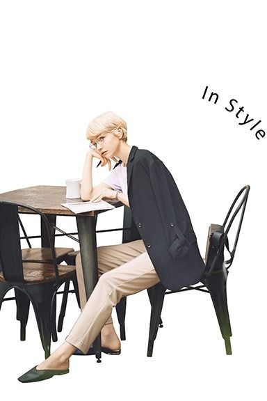 白Tに黒ジャケットをひっかけた、力まないONスタイル。合わせるパンツが黒や濃紺のだと少しおかため。しっとりとした質感のベージュを選ぶことで、品のよさに加えて女性らしいやわらかさも両得。