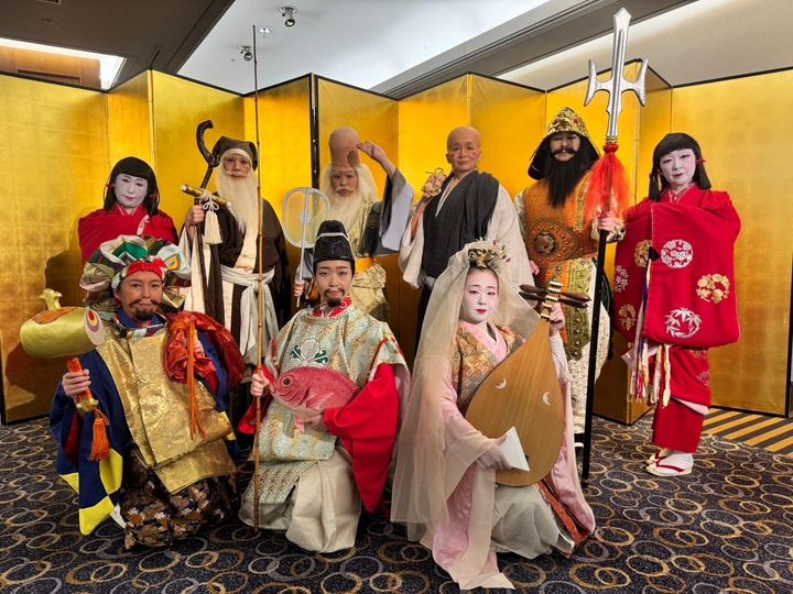 お師匠さんに振りをつけていただいて、七福神の姿で踊りも披露しました。