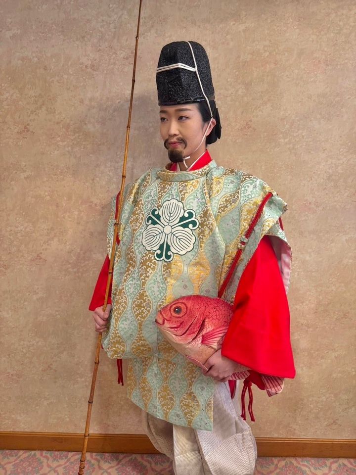お髭や烏帽子など、普段することの無い装いに気分はルンルンでした。笑