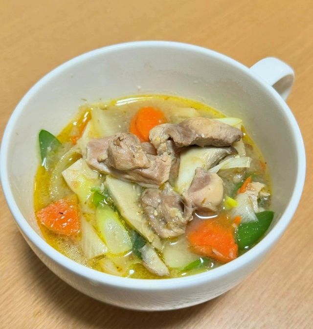 「野菜ときのこの味噌煮込み鶏汁」は、おでんでは摂りにくい野菜などの栄養をしっかり摂取できます。食材も多く食べ応えもあるので、おでんで物足りない方にぴったり♪