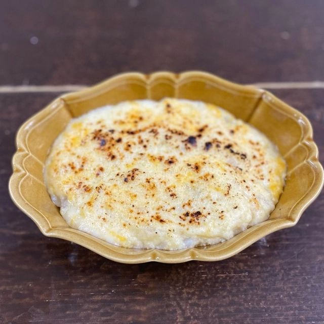 「長芋チーズのトロトロ焼き」は、長芋をフードプロセッサーで細かくすることで、トロトロの食感に♡表面に乗せたピザ用チーズが少し焦げるのを目安に、オーブンで15分ほど焼いたら完成。トロトロ食感で、おでんといっしょに食べるとより温まりますよ。