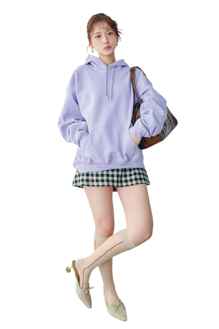 スエットパーカは、単品使いだとメンズっぽくなりすぎちゃうのが難点。だから、ギンガムチェックととんがりミュールで女みをプラスして、ぷりかわコーデに変身させちゃお♡
