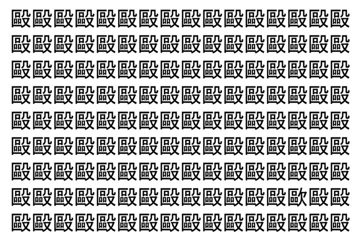 2. 【脳トレ】「毆」の中に紛れて1つ違う文字がある!?あなたは何秒で探し出せるかな??【違う文字を探せ!】